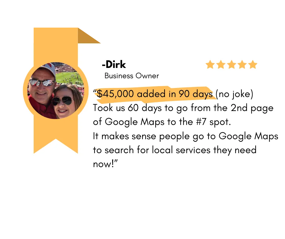 “Hit the 1st spot on Search & Maps for the first time ever! My calls tripled in 30 days. Holy crap!”