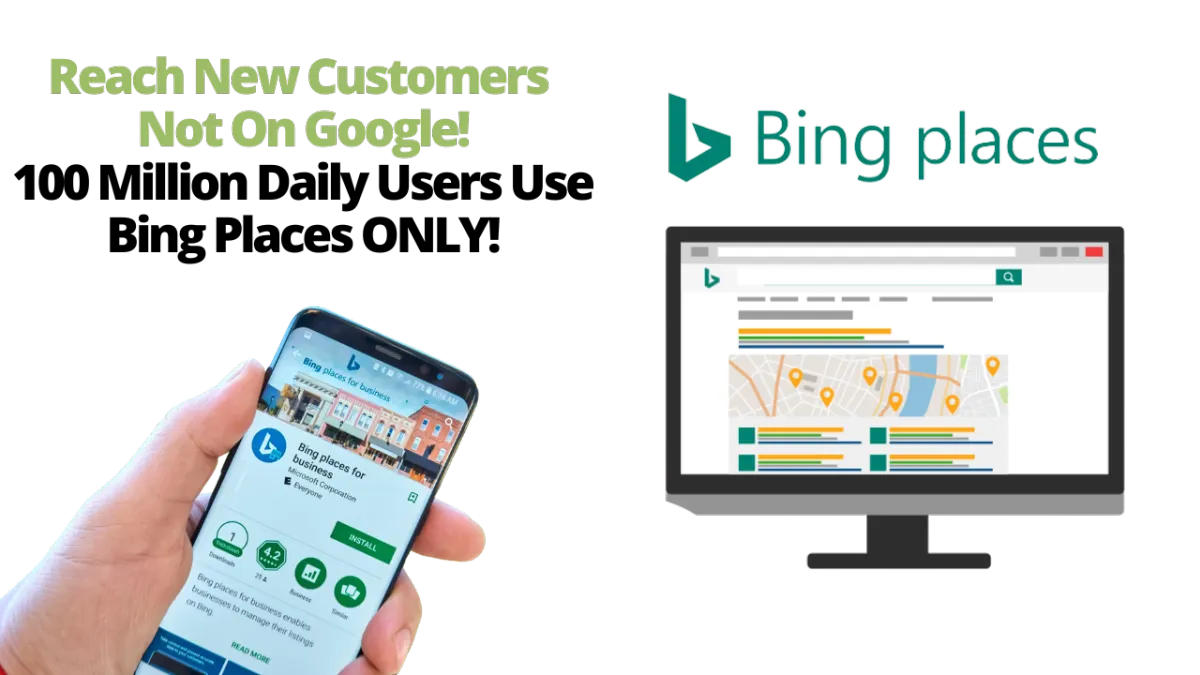 Our team will connect your Google Business Profile to BING where 100 Million active users still use it today. BING is a HUGE source of leads. 70% of Bing searchers are older and have a higher net worth than your average Google visitors!